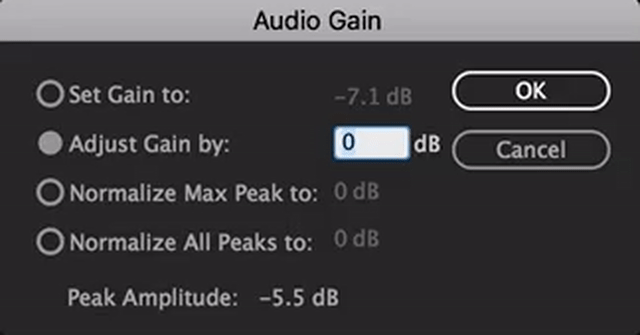 Select the clip and use the keyboard shortcut (G) to open the Audio Gain window. First, notice how Auto-Match has changed the "Set Gain to" number. This number represents the actual gain. Paul uses “Adjust Gain by” to raise or lower his clip audio gain levels. Note how the actual gain will update to reflect the entered "Adjust Gain by" value. It makes sense to use Audio Gain for tweaking Auto-Matched clips because that's where you can see the Auto-Match results. Click here to learn more about how to normalize one or more clips in Premiere Pro.