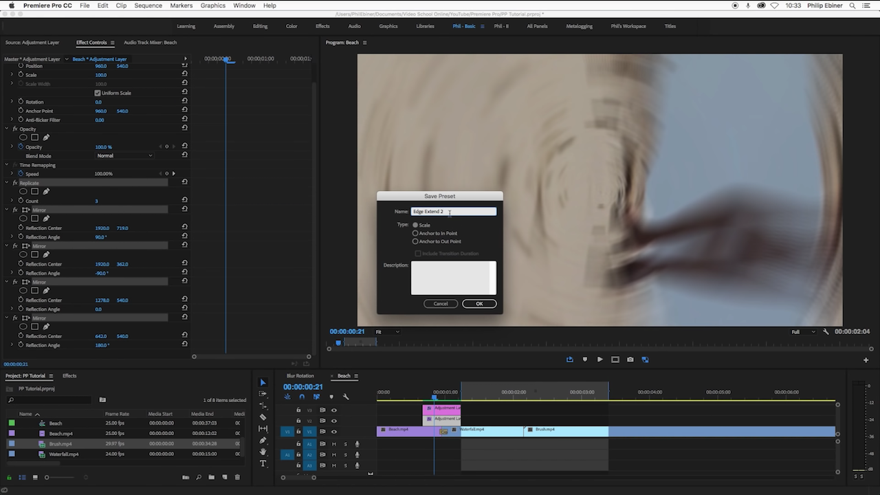 If you made it to this point, you've got to be thinking, 'this is a lot of work for one transition. Do I have to do this every time?' The answer is no, thanks to effect presets in Premiere Pro. In the video segment below, Phil will show you how to save the mirrored grid and smooth rotation as presets you can use later.